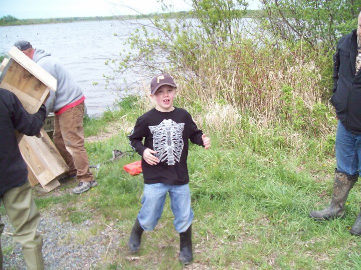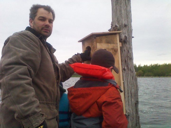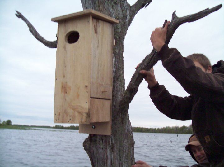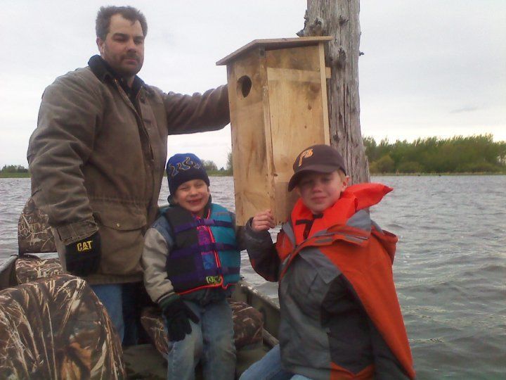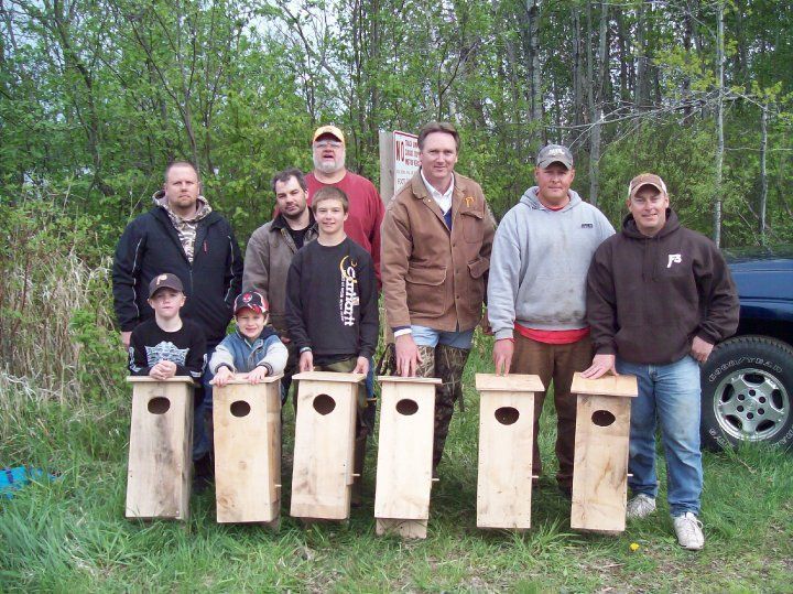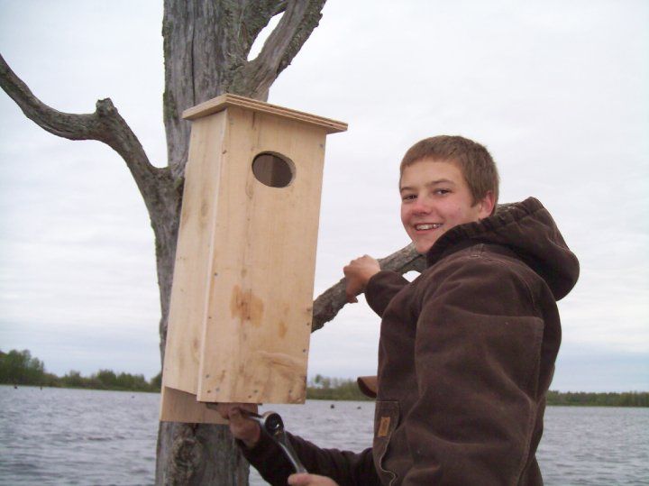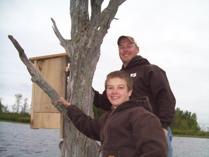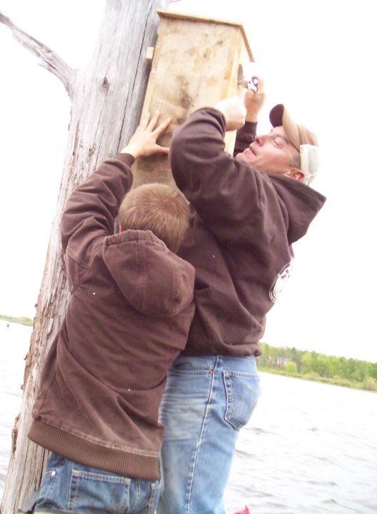 F3 friends and kids putting up new wood duck houses on the watershed