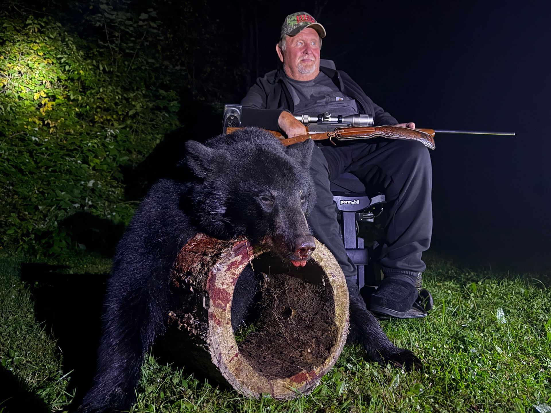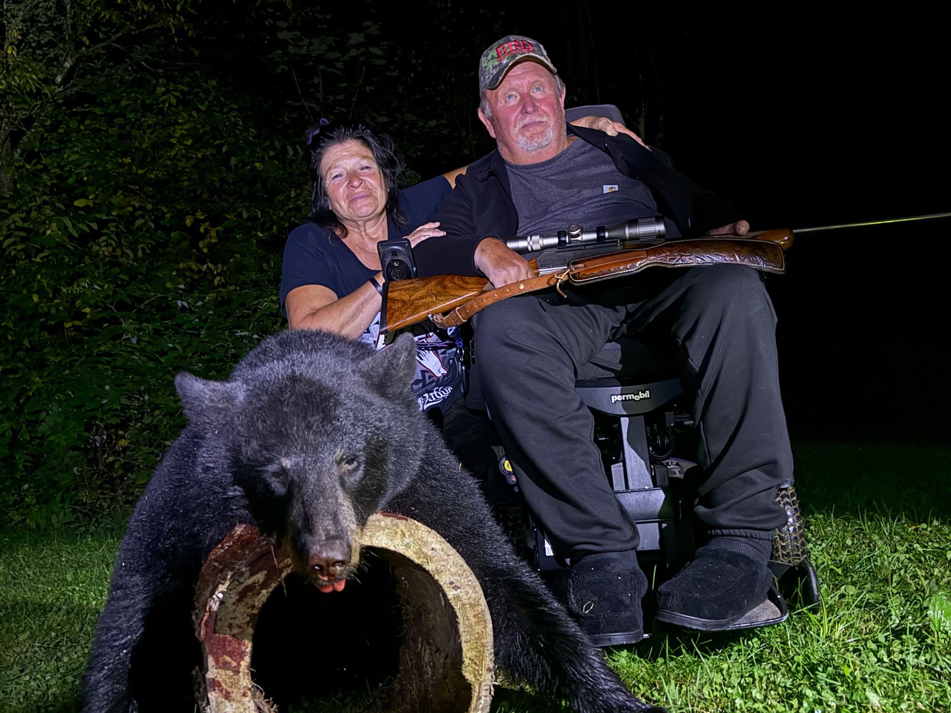 Dean made his way down the rugged trail to the blind, his wife Gail by his side. Once settled in, it was “go time.” The woods were alive, and soon enough, both Dean and Gail spotted bears moving through the trees. The moment was there—heartbeats quickened—but Dean made the choice to pass. Some might wonder why, but for Dean, this hunt was never meant to be rushed. Passing that first opportunity wasn’t a loss; it was a sign. He wasn’t ready for the story to end so soon. The hunt had only just begun.
