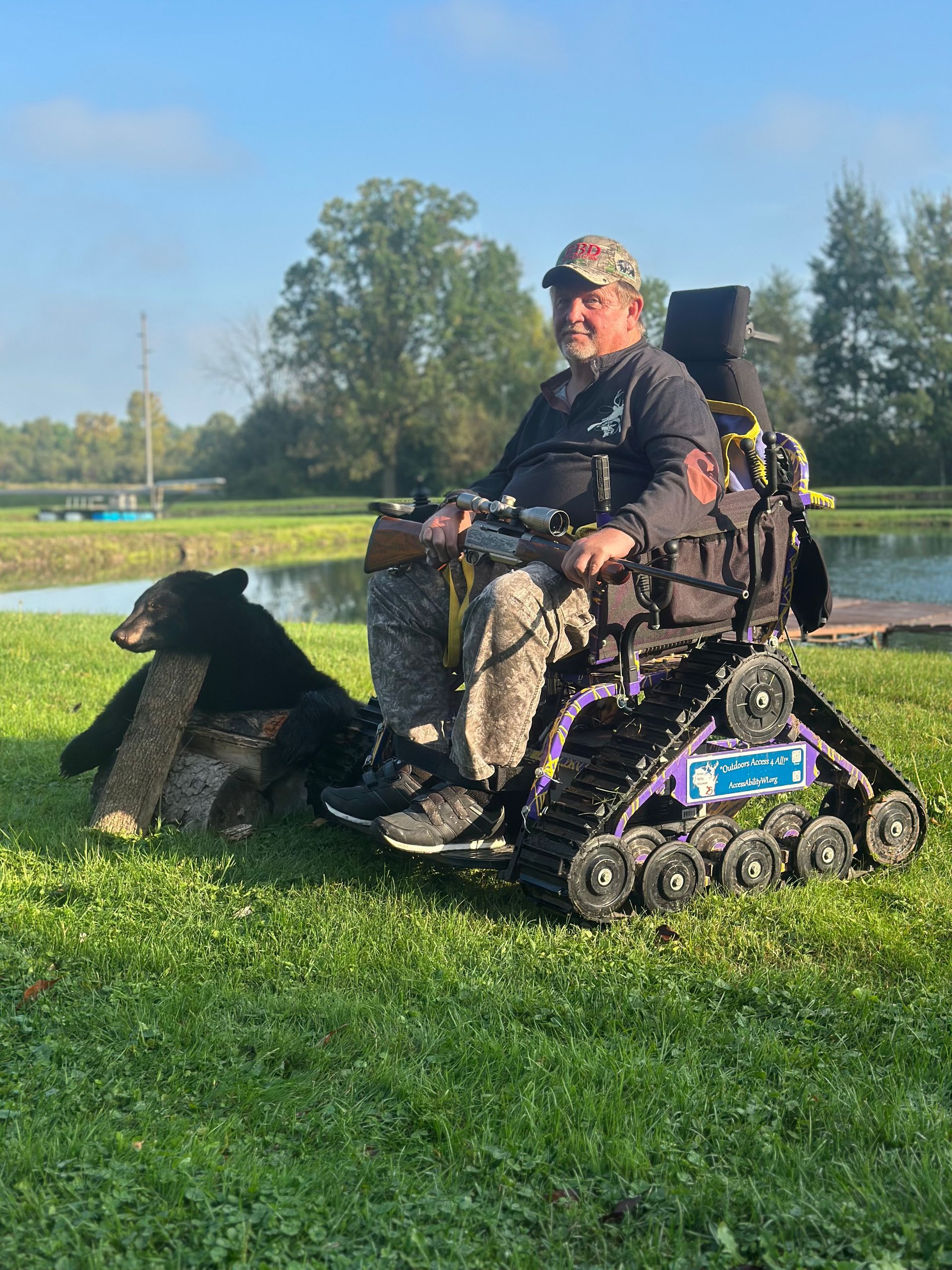 Excitement filled the crisp September air as F3 members and supporters worked together to transfer Dean from his regular wheelchair into an especially equipped Access Ability Wisconsin outdoor-tracked chair. Every movement was made with care, but behind it was a wave of energy and anticipation—after all, the trail cameras had been buzzing with daily bear activity.